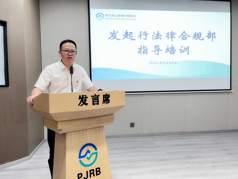 8月25日,发起行嘉兴银行法律合规部一行赴浦江嘉银村镇银行开展调研指导,并组织现场培训,我行全行员工参与,由党委书记、董事长、行长金益丹主持。